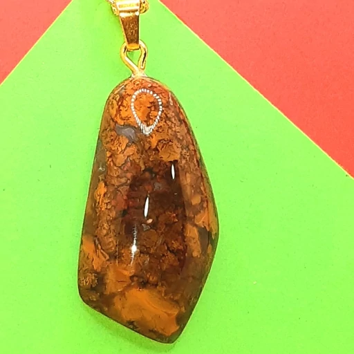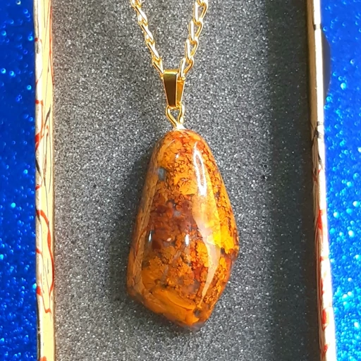 با گردنبند عقیق خزهای کد 3، زیبایی و انرژی طبیعت را به گردن خود بیندازید! این جواهر بینظیر با طرحهای طبیعی و انرژی مثبتش، بهترین انتخاب برای عاشقان زیباییهای طبیعی است. به سبک خود جلوهای خاص ببخشید و اعتماد به نفس خود را با این گردنبند منحصر به فرد افزایش دهید. همین حالا خرید کنید و خاص باشید .عقیق خزهای یا عقیق دندریتی (Moss Agate / Dendritic Agate): این سنگها به دلیل داشتن الگوهای ناشی از اکسیدهای آهن یا منگنز در ساختار کوارتز، به شدت شبیه به خزه یا شاخه درخت هستند. رنگهای غالب قهوهای و نارنجی نشاندهنده محتوای بالای اکسید آهن (Iron Oxide) در سنگ است.